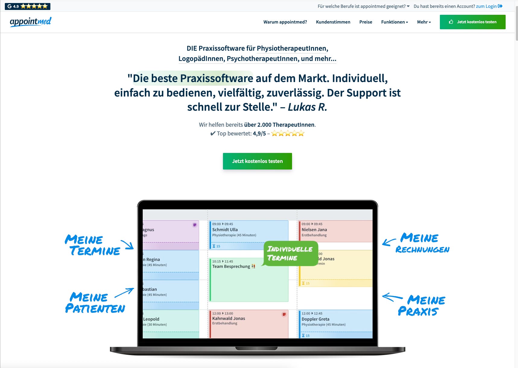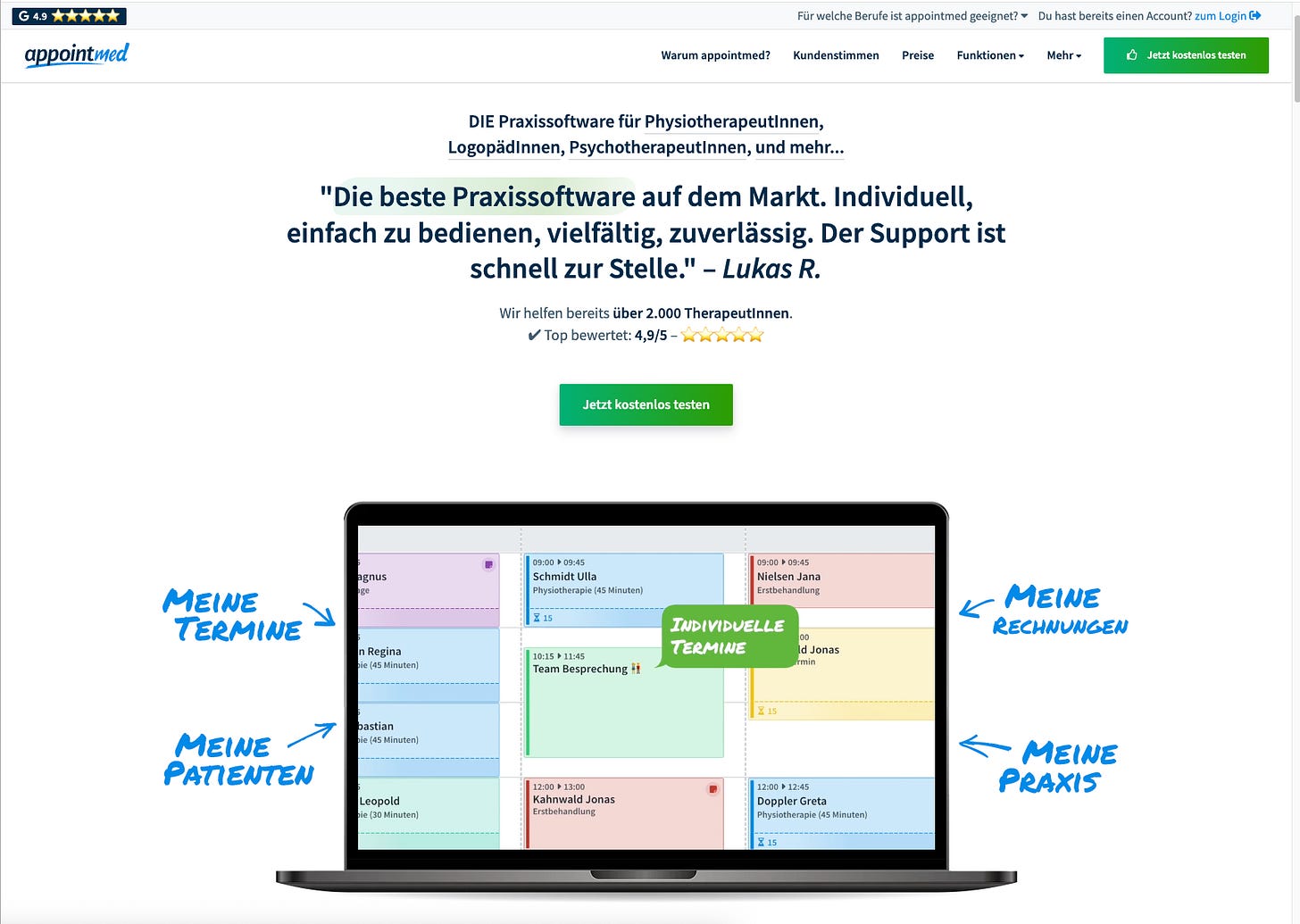 The breakthrough came in 2018/2019 with a radical decision: focus on therapists instead of doctors. Today, appointmed serves practices from individual therapists to group practices with 60 employees – 60% in Austria, 40% in Germany.