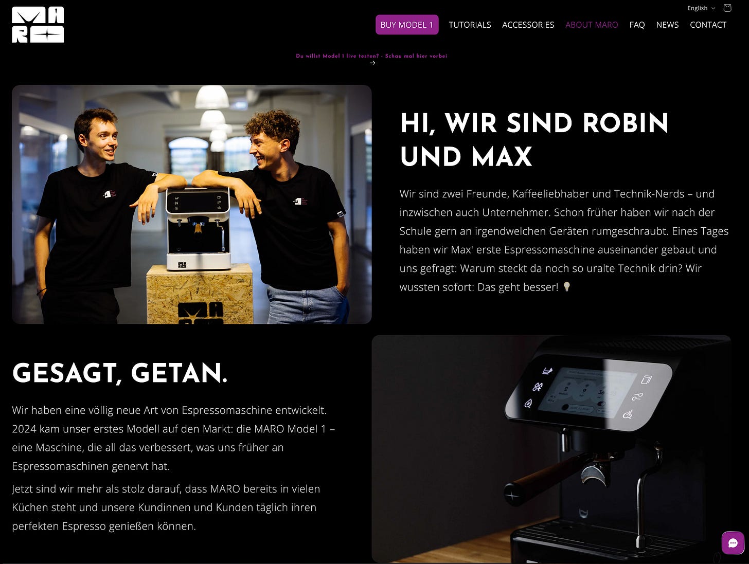 Max Grimm and Robin Kuprat were 20 when they started taking espresso machines apart. Today their company MARO sells the Model 1 for €4,999 – with IoT connectivity, software updates, and 430 individual parts. Nearly 400 machines later, they’re at seven-figure revenue and still bootstrapped.