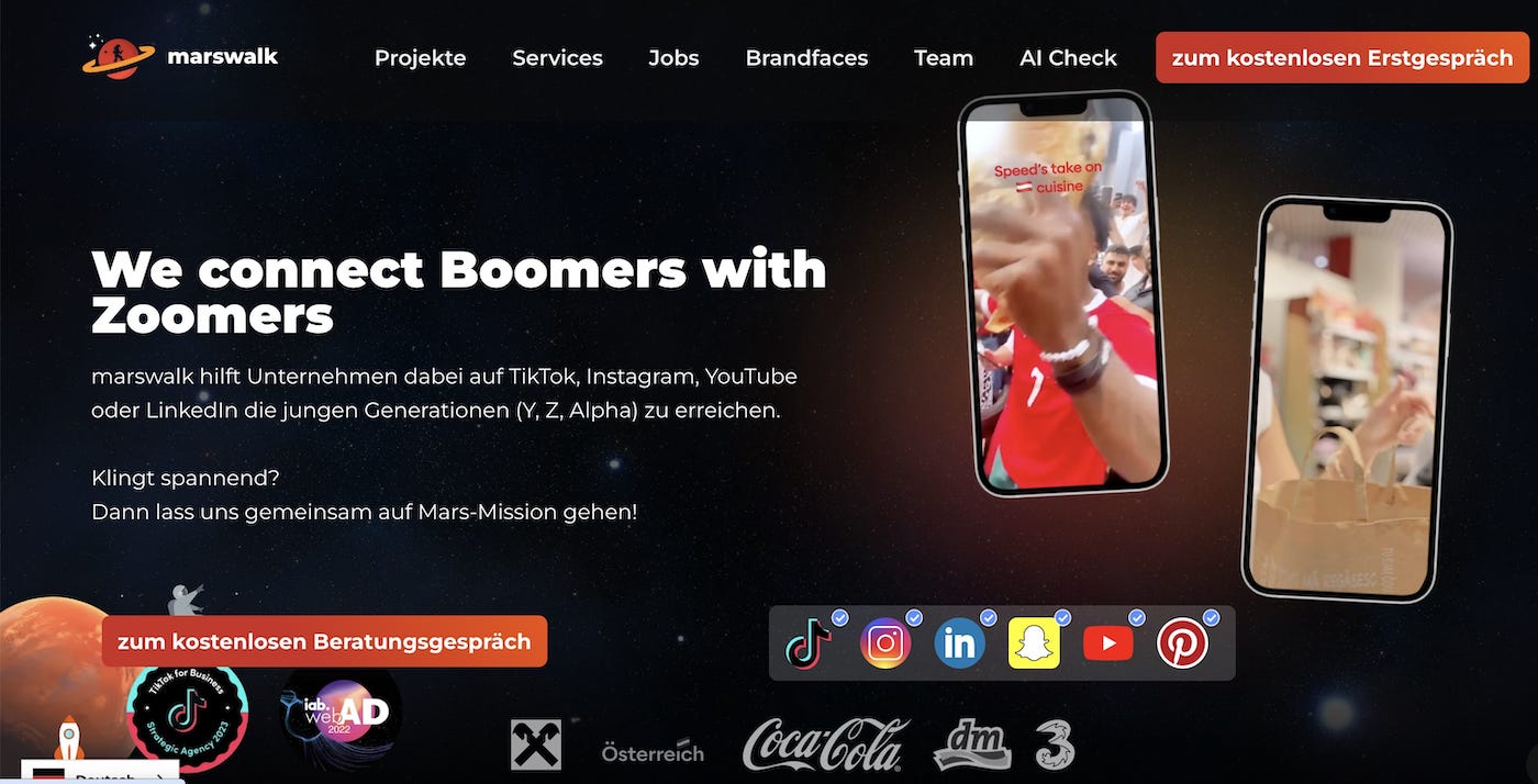 Today, Marswalk employs 45 people in Vienna, Berlin, and soon Cologne. Annual revenue is 5 million euros. Marswalk works with large companies to reach Gen Z via TikTok, Instagram, and other platforms.