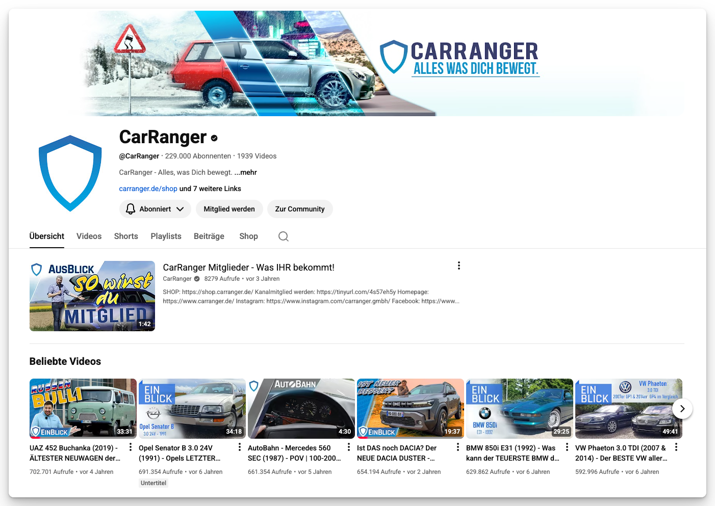 CarRanger tests everything with four wheels – old cars, new cars, used, brand new. The motto: “Everything that moves you.” Alex produces two to three long-form videos per week plus a daily Short. 99 percent alone, all one-take – with slip-ups, stumbles, and hoods that won’t open properly.