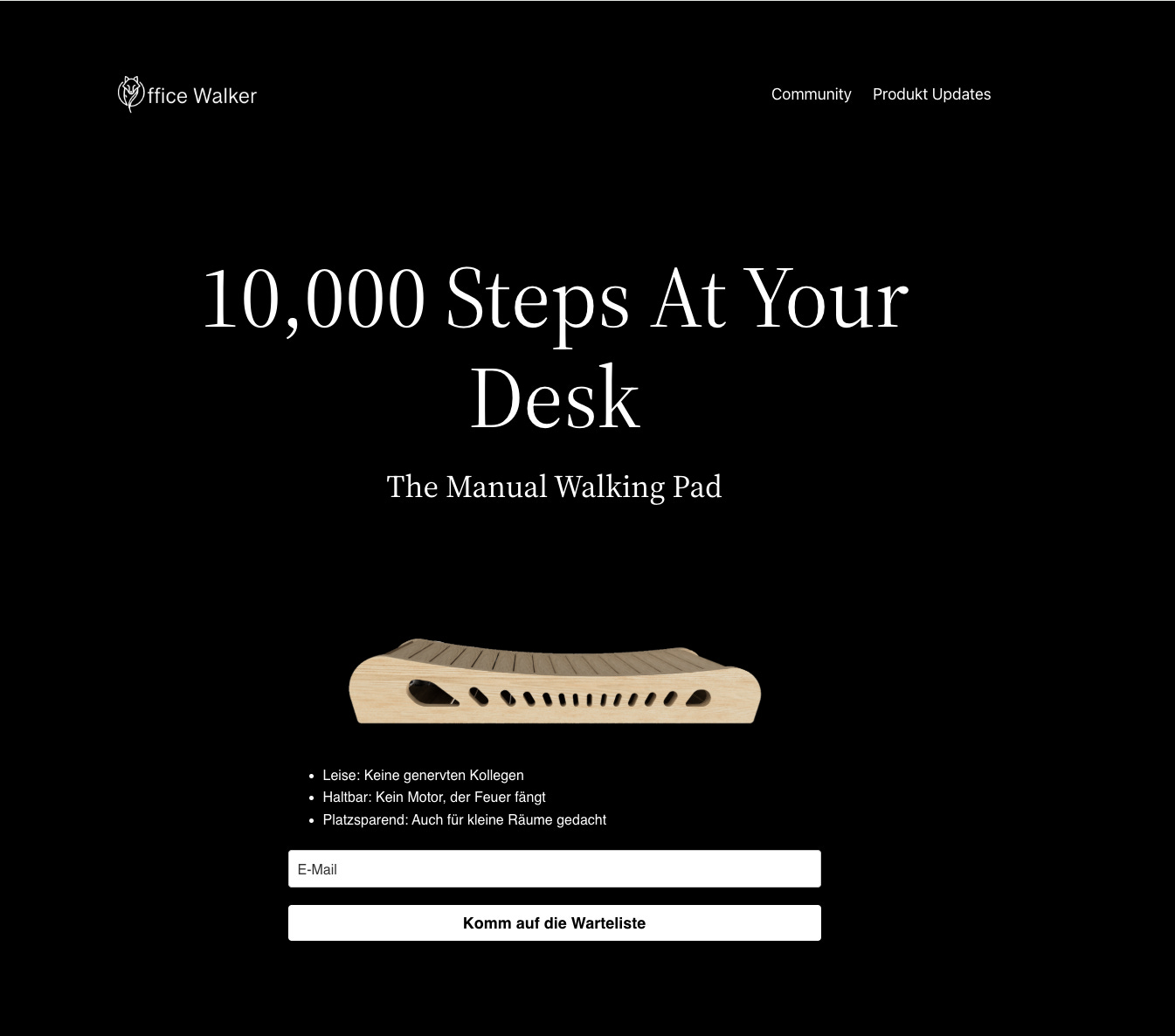 His SEO strategy works: 7,000 waitlist entries without paid advertising. He writes detailed blog articles about walking pads, ergonomics, and health in the home office. Google ranks him highly for relevant keywords like “mechanical walking pad” or “walking pad continuous operation.”