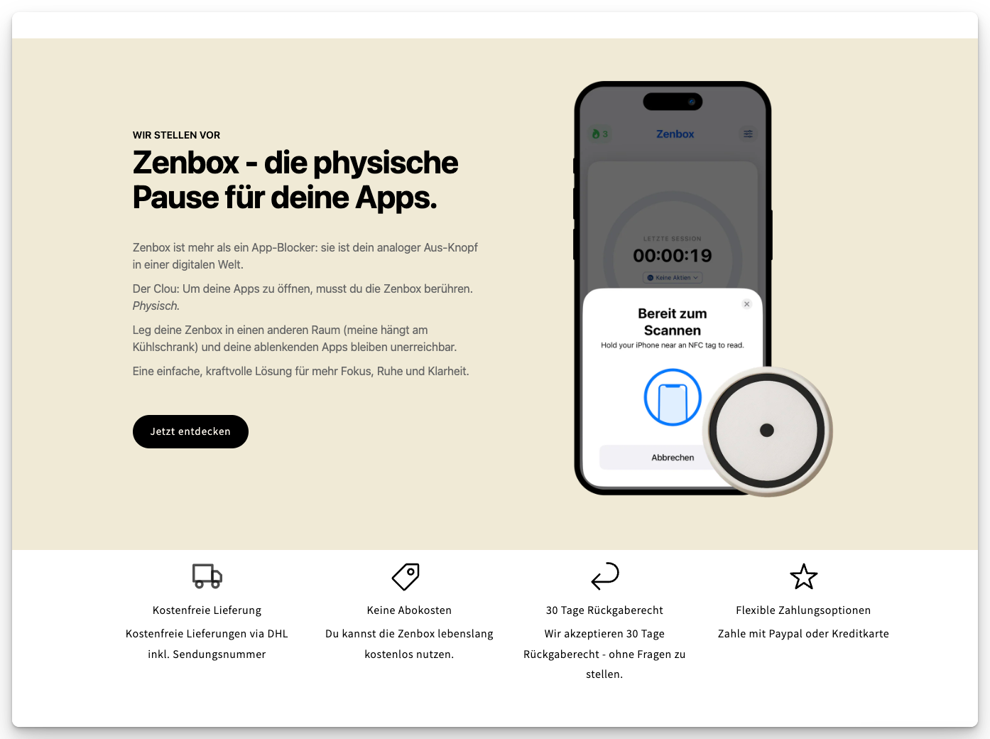 Konstantin Singer is 36 years old, works full-time at Mercedes on infotainment apps – and built Zenbox on the side in 12 months. A “Physical App-Blocker”, a digital detox device for 49.90 euros. No subscription, no account, completely offline.